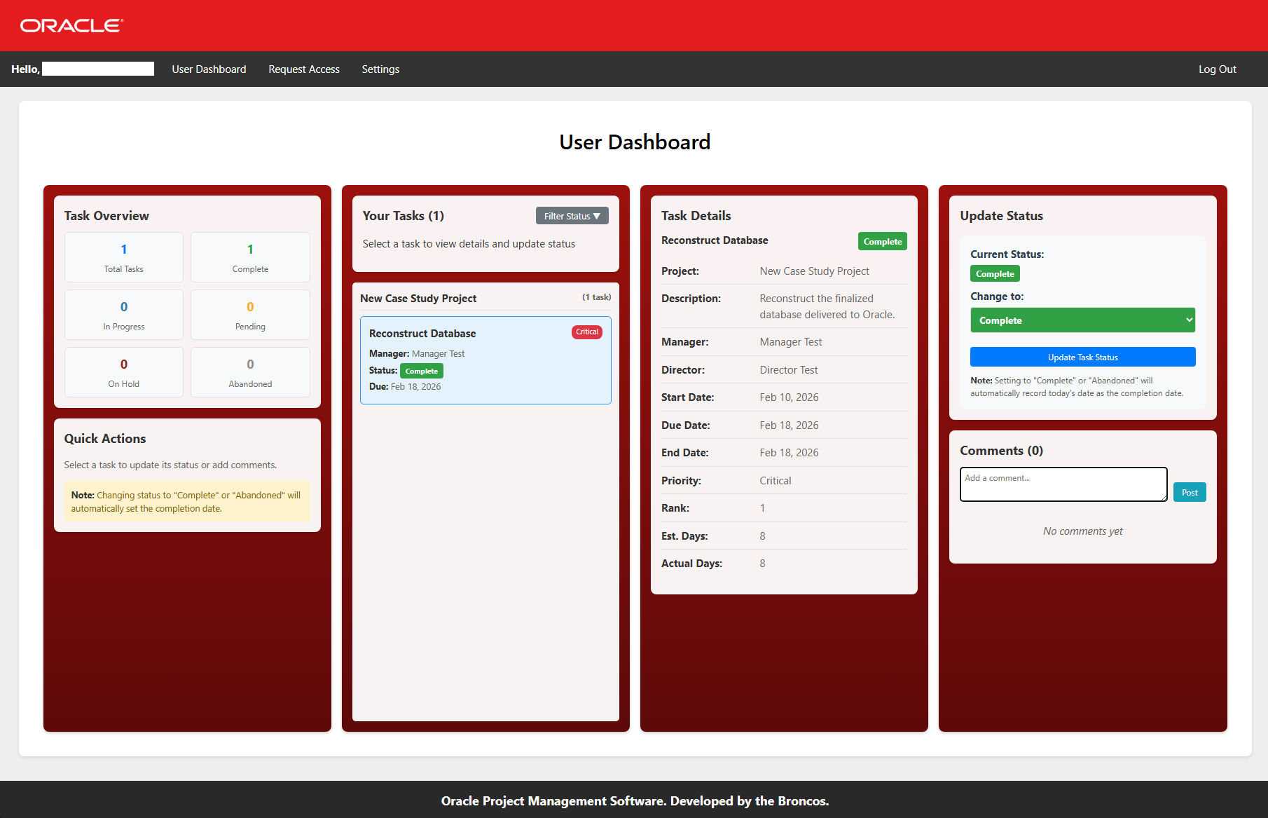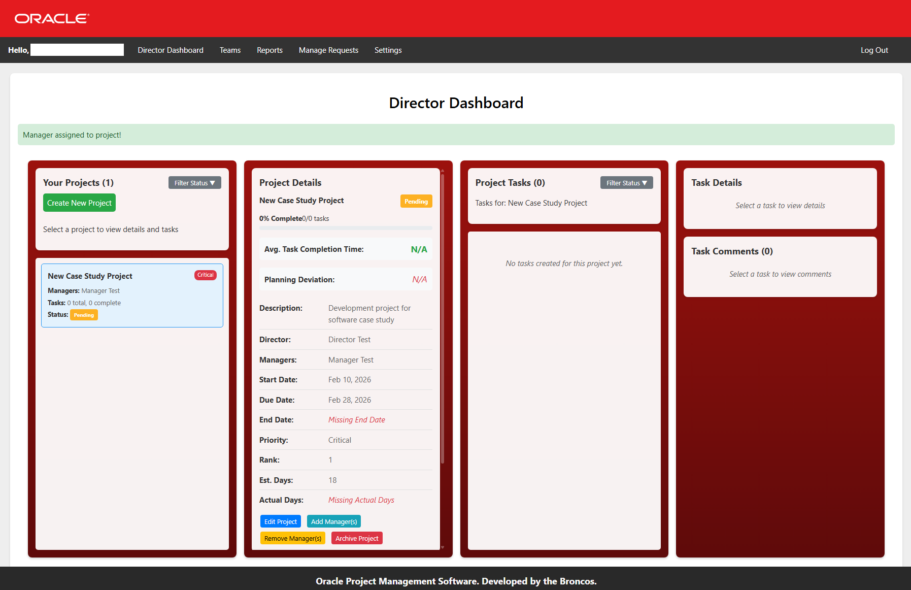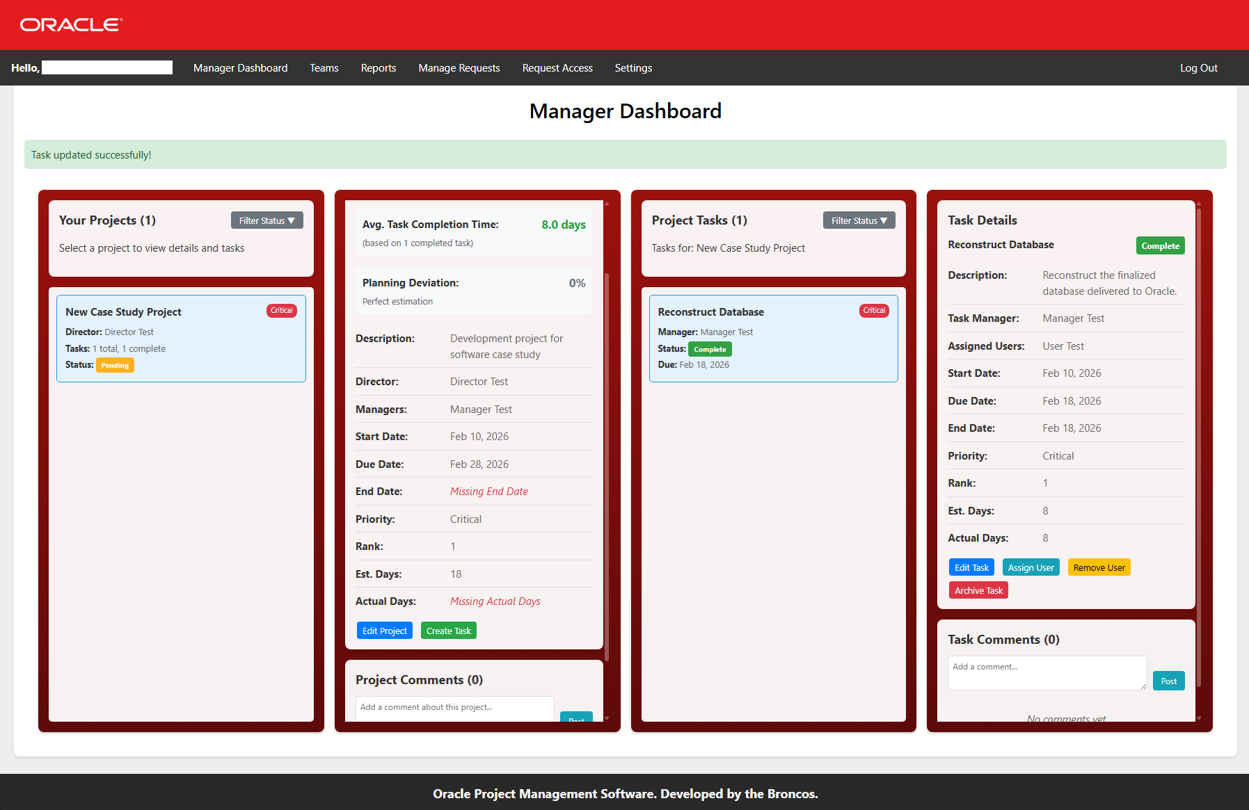 The goal: create a fully functional, production-ready system that Oracle stakeholders could use to reliably perform basic project management.